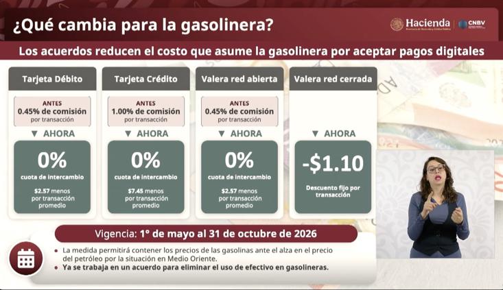 El plan tendrá vigencia del 1 de mayo al 31 de octubre de 2026 y, según Hacienda, permitirá contener el precio de las gasolinas, especialmente en un contexto donde el 47.4% de las compras aún se realizan en efectivo.