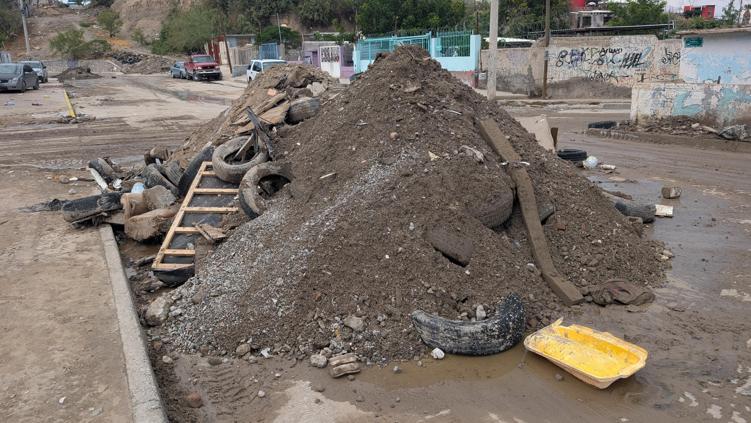 Las imágenes captadas en el lugar muestran el arroyo que pasa entre las calles Copilco y Paquimé arrastró grandes cantidades de desechos y sedimento.
