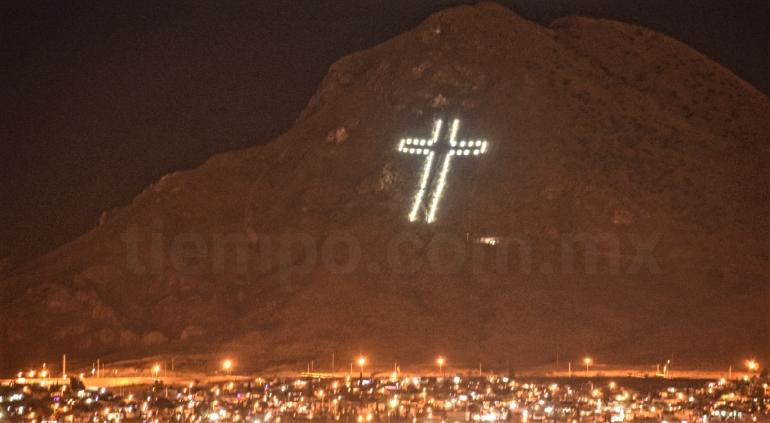 Hoy fue encendida la emblemática Cruz del Cerro Grande en la ciudad de Chihuahua, que adorna la zona sur de la ciudad durante la temporada decembrina, cuenta con 92 lámparas así como 1,600 metros de cableado.