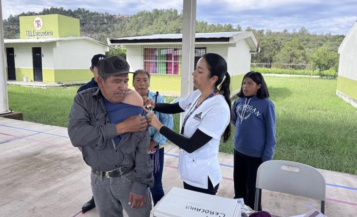 Personal de distintas dependencias del Gobierno del Estado realizó una jornada de trabajo en comunidades de la Sierra Tarahumara, donde se aplicaron vacunas contra el sarampión y se entregaron apoyos alimenticios a familias en situación de vulnerabilidad.