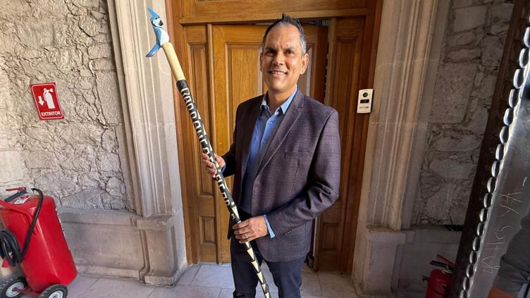 Gilberto Loya Chávez, recibió un bastón de mando, otorgado por el presidente del Consejo Supremo Indígena de la Sierra, Enoel Carrasco Jordán.