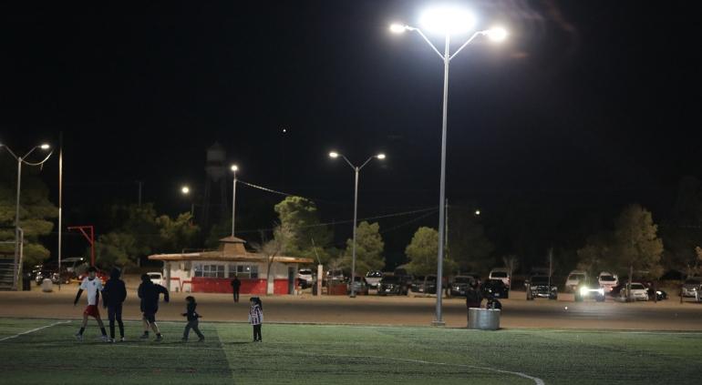 El Gobierno Municipal instaló alumbrado en los campos del Club de Futbol Veteranos, obra realizada por la Dirección de Alumbrado Público y entregada en una ceremonia encabezada por el alcalde Cruz Pérez Cuéllar.