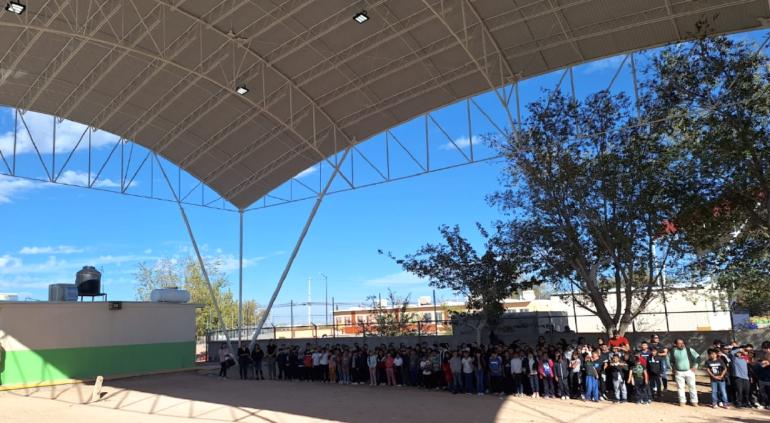 Este martes, el presidente Cruz Pérez Cuéllar hizo entrega de tres domos en escuelas ubicadas al suroriente de Ciudad Juárez.