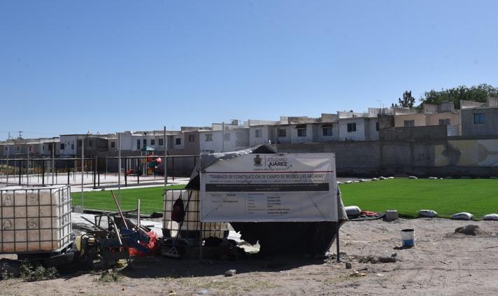 La Dirección de Obras Públicas trabaja en la construcción de un campo de béisbol en el fraccionamiento Las Arcadas, con una inversión superior a los 6 millones de pesos.
