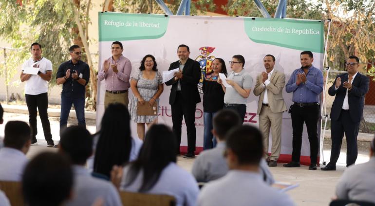 En el evento estuvieron presentes también el regidor Jorge Bueno; Ismael Rueda, coordinador de Infraestructura Educativa; el director de Educación, Guillermo Alvídrez, además de docentes del plantel.