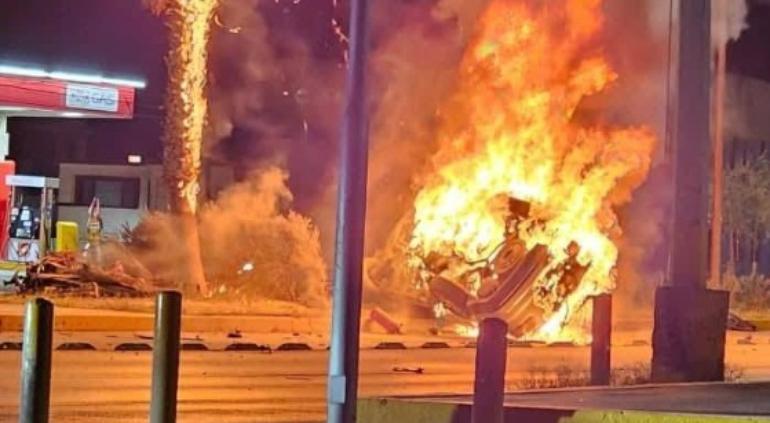 A su vez, ardieron en llamas dos palmas, un arbusto y un vialetón, además de afectar la carpeta asfáltica por derrame de aceite y líquido.