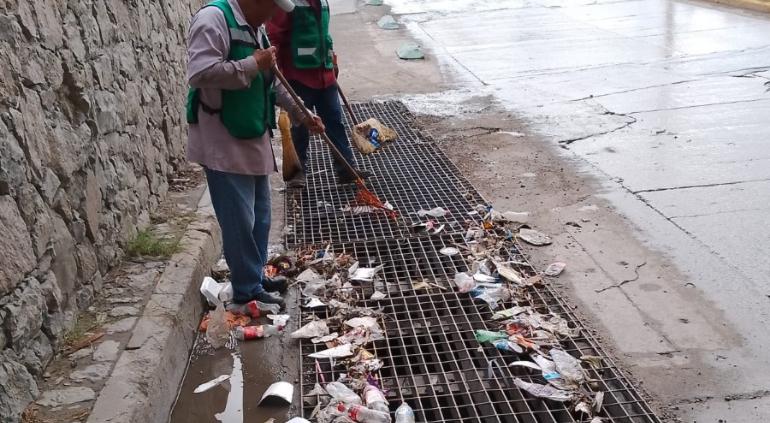 Personal de la Dirección de Limpia trabajó en la limpieza de rejillas pluviales en distintos puntos de la Zona Centro de la ciudad para prevenir encharcamientos e inundaciones durante las lluvias del fin de semana.