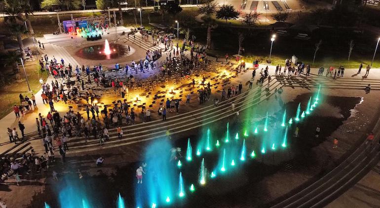 Decenas de familias disfrutaron de la inauguración del Parque Central Oriente, los niños no perdieron la oportunidad de jugar en las fuentes danzarinas.