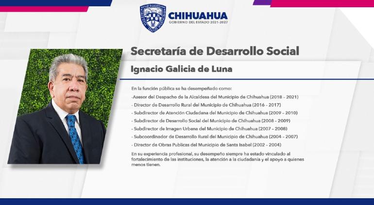Esta mañana en la presentación del gabinete de la gobernadora electa Maru Campos en el hotel Sheraton, anunciaron el nombramiento de Ignacio Galicia de Luna como el Secretario de Desarrollo Humano y Bien Común.