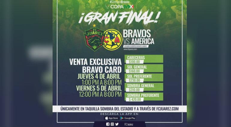 El FC Juárez publicó los precios reales de los boletos para la final de la Copa Mx entre Bravos y América.