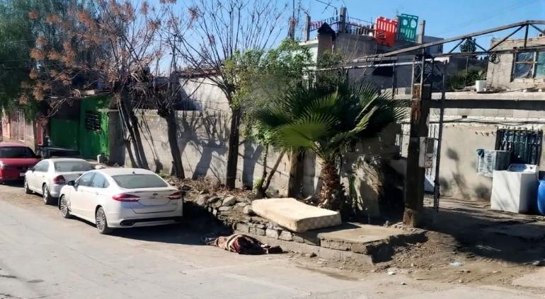 La víctima fue identificada como David R., cuyo cuerpo se encontraba cubierto con un cobertor color guinda con beige.