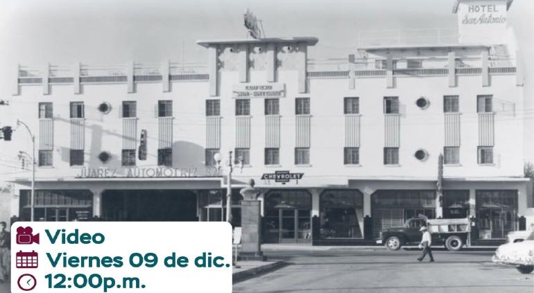 El viernes 9 de diciembre a las 12:00 horas la Dirección de Educación transmitirá la cápsula educativa que permitirá a los juarenses conocer la historia del Hotel San Antonio el cual estuvo ubicado en la avenida 16 de Septiembre frente al Mercado Juárez.