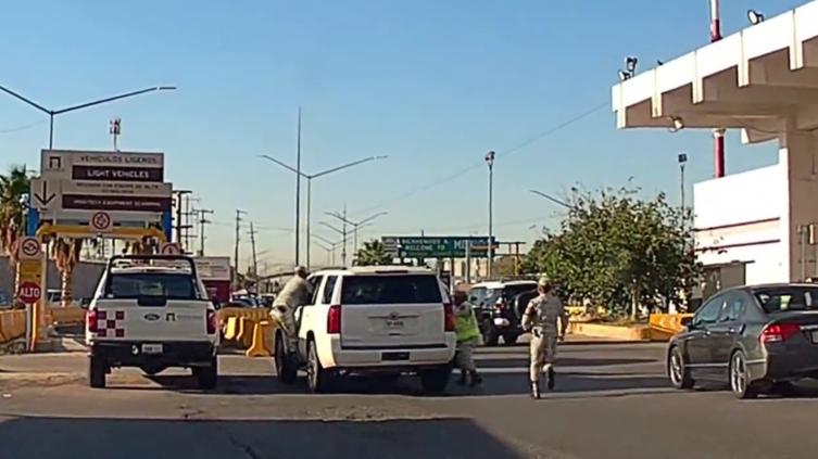 La unidad Tahoe blanca con placas de Texas cruzaba de El Paso a Ciudad Juárez cuando un elemento le marcó el alto y, aunque este subió al estribo, se escapó.
