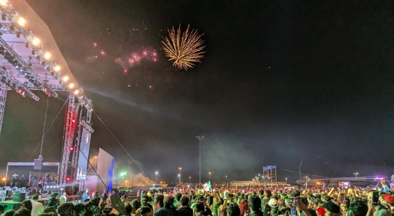 Luego, se dio paso a un espectáculo de varios minutos de pirotecnia que iluminó el cielo de Ciudad Juárez con los colores de la bandera mexicana.