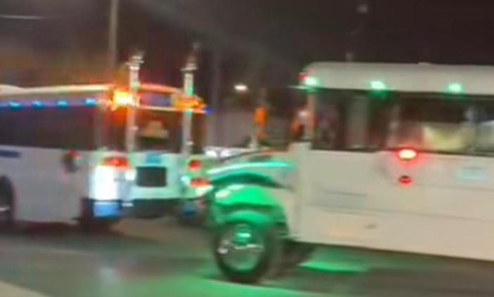 Una inusual y "muy vistosa" caravana de camiones de transporte de personal sorprendió a los conductores que circulaban por la avenida Tecnológico la noche de este lunes, en vísperas de la celebración del Día de San Judas Tadeo.