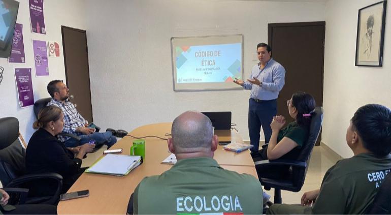 Personal de la Dirección de Derechos Humanos impartió una capacitación sobre el Código de Ética a trabajadores de la Dirección de Ecología, con el propósito de fortalecer la integridad y responsabilidad en el servicio público.