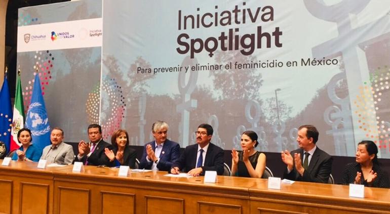 Esta tarde fue inaugurada la iniciativa de las Naciones Unidas y la Unión Europea Spotlight, la cual tiene la intención de eliminar los feminicidios, programa que estará en Chihuahua y darán 7.5 millones de dólares a México.