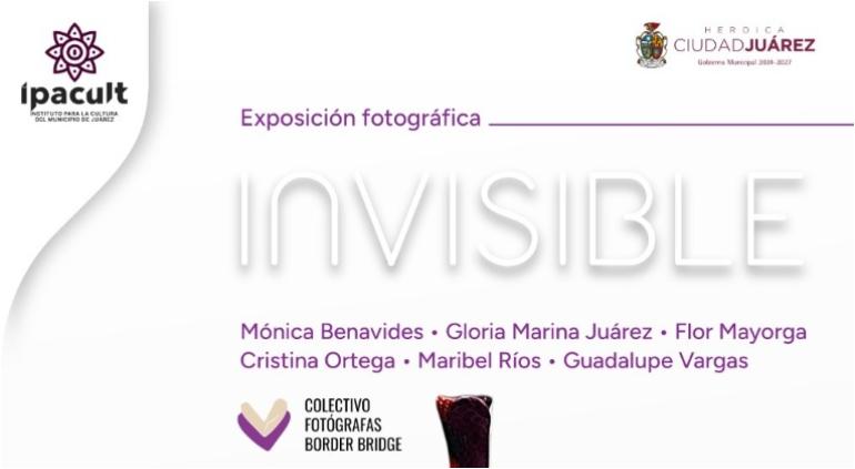 El Instituto para la Cultura del Municipio de Juárez (IPACULT) inaugurará la exposición fotográfica “Invisible”, del Colectivo Fotógrafas Border Bridge, el próximo viernes 30 de enero a las 18:00 horas en el Museo de Arqueología e Historia de El Chamizal. La entrada será libre y abierta a todo público.