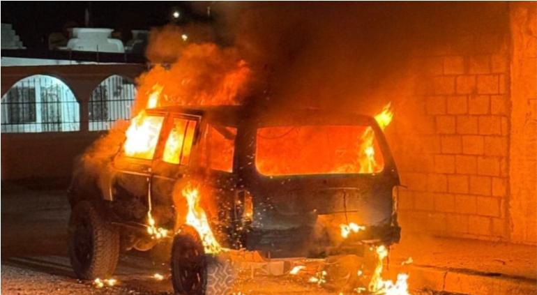 Abandonaron e incendiaron una camioneta ligada a la masacre de tres personas en la colonia La Patria.