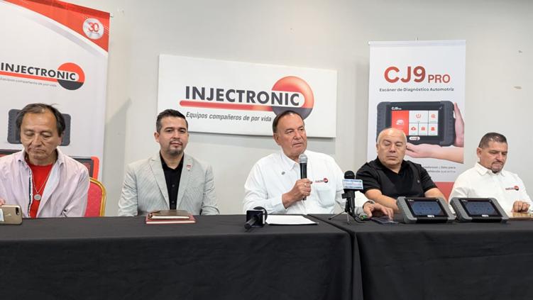 Héctor Núñez, director de la compañía Injectronic, fabricante de equipos electrónicos para reparación de automóviles, encabezó hoy la presentación del CJ9 Pro, un escáner para diagnóstico automotriz; este día además se lleva a cabo un plan de certificación para el uso y distribución del producto.