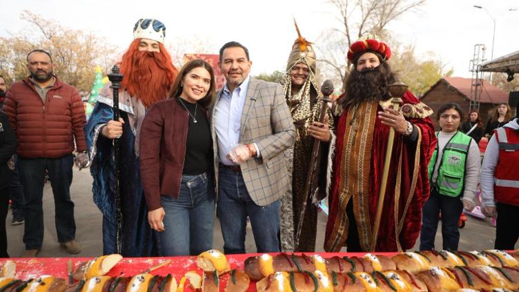 Cientos de familias juarenses se reunieron la tarde de este día en el Parque DIF, ubicado sobre la avenida Heroico Colegio Militar, para celebrar el Día de Reyes con la tradicional partida de una rosca gigante de 300 metros.