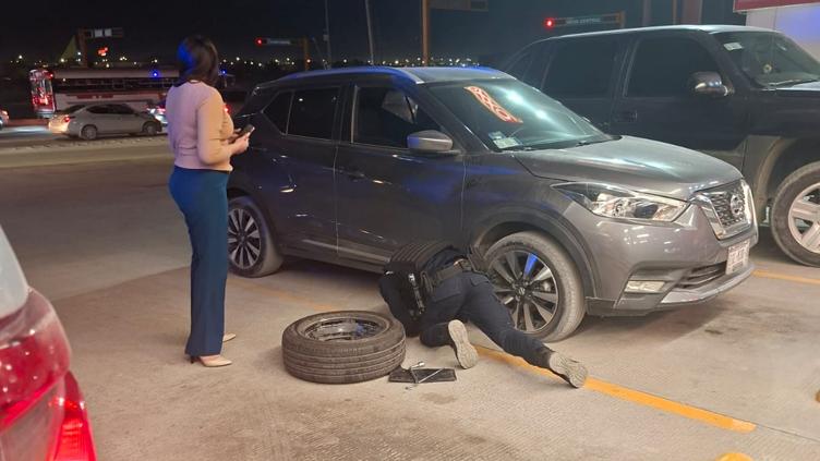 Se ponchó; ayudaron policías a mujer para cambiar llanta