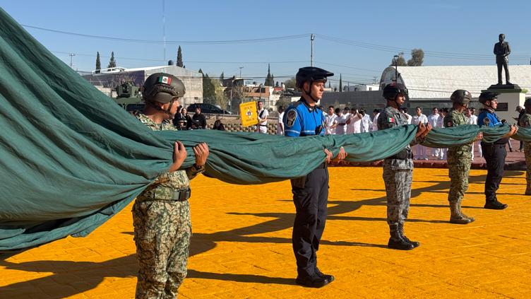 El acto se realizó en el Parque El Palomar, con la participación de escoltas escolares, corporaciones de seguridad y representantes de los tres niveles de gobierno.