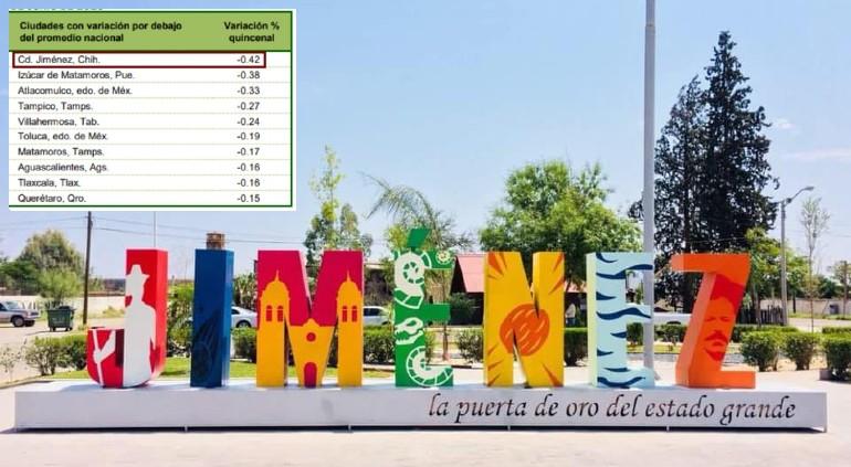 Específicamente, Ciudad Jiménez ocupó el primer lugar en "ciudades con variación por debajo del promedio nacional", pues resultó con una inflación de 4.76%, 0.42 puntos porcentuales por debajo de la media.