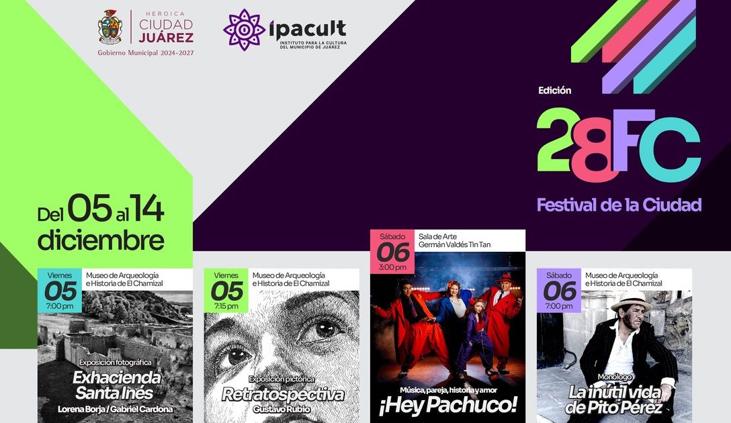 El Instituto para la Cultura del Municipio de Juárez llevará a cabo el Festival de la Ciudad del 5 al 14 de diciembre, ofreciéndole al público funciones de teatro, conciertos, exposiciones y otras presentaciones culturales gratuitas.