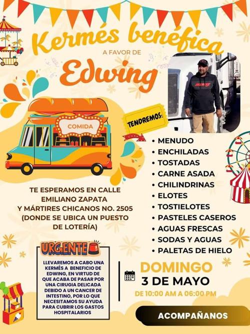 Con el objetivo de recaudar fondos para enfrentar una difícil situación de salud, familiares y amigos de Edwing invitan a la comunidad a participar en una Kermés Benéfica que se llevará a cabo el próximo domingo.