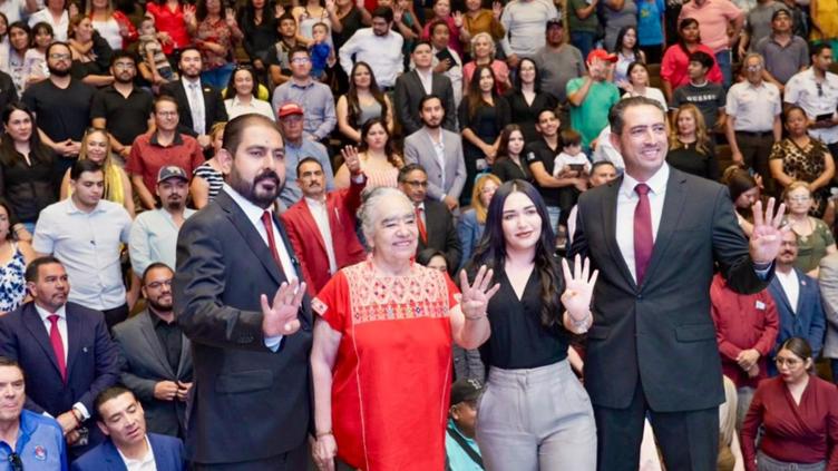 En tal sentido, nombró a González Muñiz como un compañero de lucha, que ha supuesto un factor importante en la construcción del partido. En cuanto a Riggs Baeza, aseguró que, si bien se integró tarde a las filas, «tiene la camiseta». A Rojo Almaraz la definió como una iniciadora y referente de la izquierda en la entidad federativa.