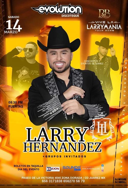 El cantante Larry Hernández se presentará este sábado 14 de marzo en Evolution Discoteque, ubicado en Ciudad Juárez.