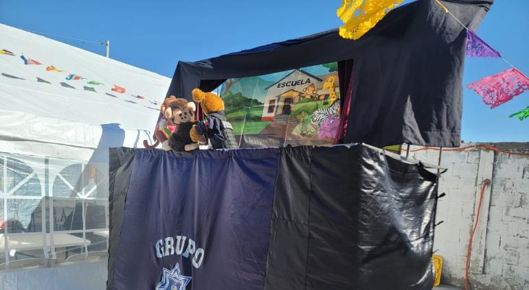 La corporación detalló que la función estuvo a cargo de elementos de la Dirección de Prevención Social , quienes llevaron “Teatrino” a niños en la Capilla de la Candelaria, como parte de las actividades de una posada navideña.