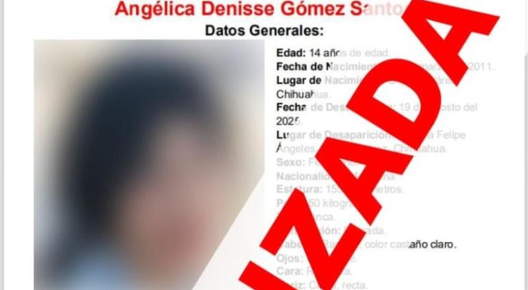 La Fiscalía de la Mujer informó que fue localizada sana y salva la adolescente Angélica Denisse Gómez Santos, de 14 años, en Ciudad Juárez.