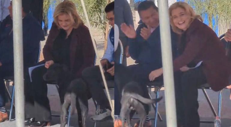Lomito irrumpió evento de Maru; la Gobernadora jugó con él