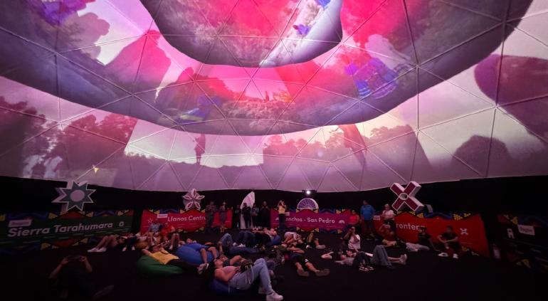 En el domo se proyectan imágenes de regiones como el desierto, Conchos-San Pedro, Llanos Centrales, Sierra-Norte, Sierra Tarahumara, Sur, Paquimé y Región Frontera.