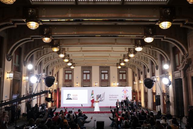 Hoy 4 de febrero, la presidenta de México, Claudia Sheinbaum Pardo, encabeza la conferencia matutina, La Mañanera del Pueblo, la cual tiene lugar en el salón Tesorería de Palacio Nacional.