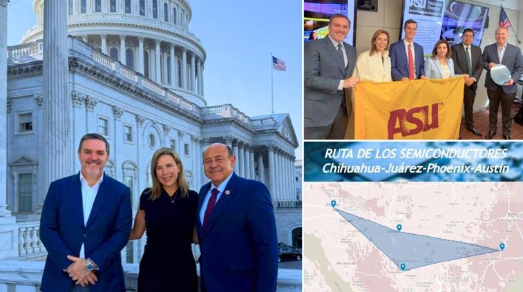 La gobernadora Maru Campos ha mencionado el impulso a la Ruta de los Semiconductores, un triángulo que se forma entre el estado de Chihuahua (sobre todo en Ciudad Juárez), Phoenix (Arizona) y Austin (Texas).