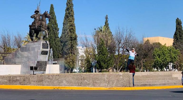 Esta tarde un aficionado acudió a la Glorieta de Pancho Villa a celebrar el triunfo de Argentina en el Mundial de Qatar 2022 sobre Francia.