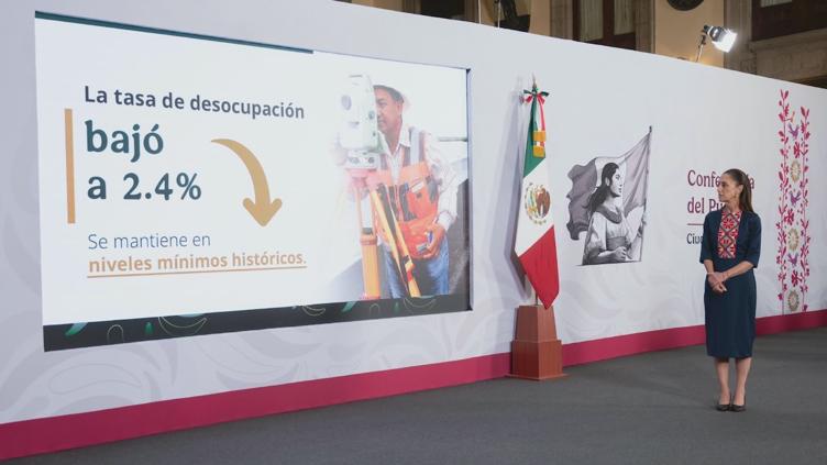 Por su parte, el secretario del Trabajo, Marath Baruch Bolaños López, detalló que, de acuerdo con la Encuesta Nacional de Ocupación y Empleo, el país alcanzó 60.2 millones de personas ocupadas, lo que representa 422 mil más que hace un año. Añadió que la tasa de desocupación se ubicó en 2.4%, la más baja entre los países de la Organización para la Cooperación y el Desarrollo Económicos, con una tendencia descendente en el primer trimestre.