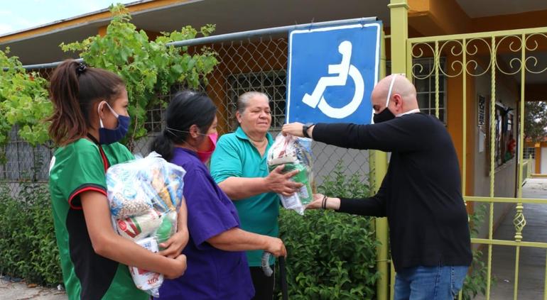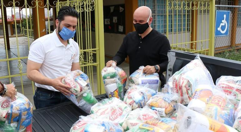 El diputado local Miguel LaTorre y el regidor Juan Abdo Fierro repartieron 100 despensas en distintas colonias de la ciudad ante la contingencia sanitaria por el coronavirus.