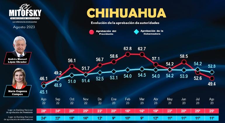 - Al cierre del mes de agosto, el Presidente de México recibió una aprobación del 49.4% en el estado de Chihuahua.