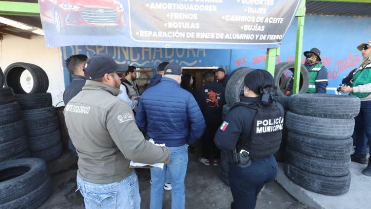 Durante estas acciones, autoridades municipales clausuraron una desponchadora ubicada en el suroriente, ya que operaba sin los permisos necesarios y sin uso de suelo autorizado. Además, el negocio acumulaba llantas e invadía la vía pública, a pesar de haber recibido avisos previos.