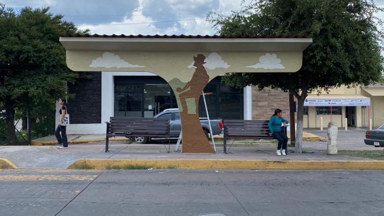 Muralista renueva paradas de camión en la ciudad de Parral