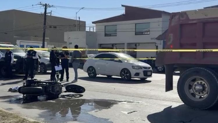 El conductor de una motocicleta perdió la vida este lunes luego de que derrapó y un dompe le pasó por encima.