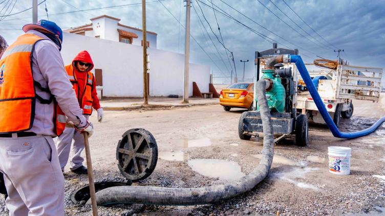 La Junta Municipal de Agua y Saneamiento de Juárez brindó apoyo a los vecinos del fraccionamiento Floresta, luego de las inundaciones registradas el pasado fin de semana por acumulación de agua de lluvia y drenaje.