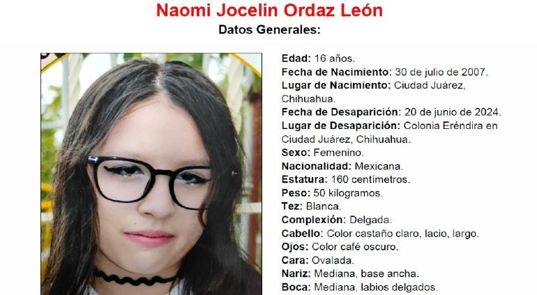 Naomi Jocelin Ordaz León, de 16 años de edad, fue vista por última vez ayer 20 de junio en la colonia Eréndira y hasta el momento se desconoce su paradero.