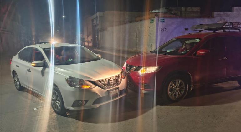 Un choque entre dos vehículos Nissan se registró la noche de ayer en la colonia Salvárcar, luego de que una conductora omitiera un señalamiento de alto.