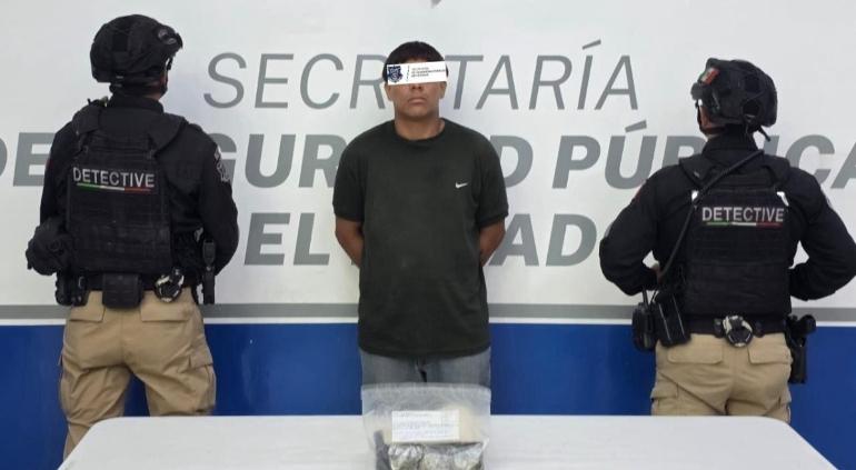 Un joven de 19 años fue arrestado por agentes estatales en la zona de parcelas del ejido Zaragoza, luego de ser identificado como posible implicado en un homicidio y hallado con presunta droga.