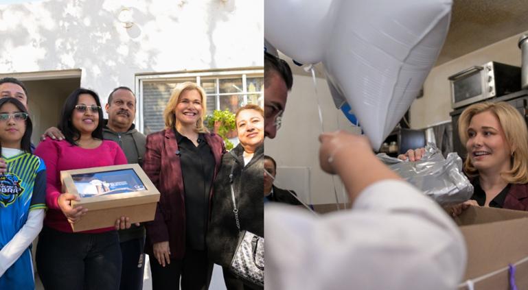 La entrega se realizó durante la gira de trabajo de la mandataria por Ciudad Juárez, donde visitó a la familia Gallegos-Macal, cuya situación se hizo pública hace aproximadamente dos años, cuando fueron evacuados por la policía del inmueble en el que residían.